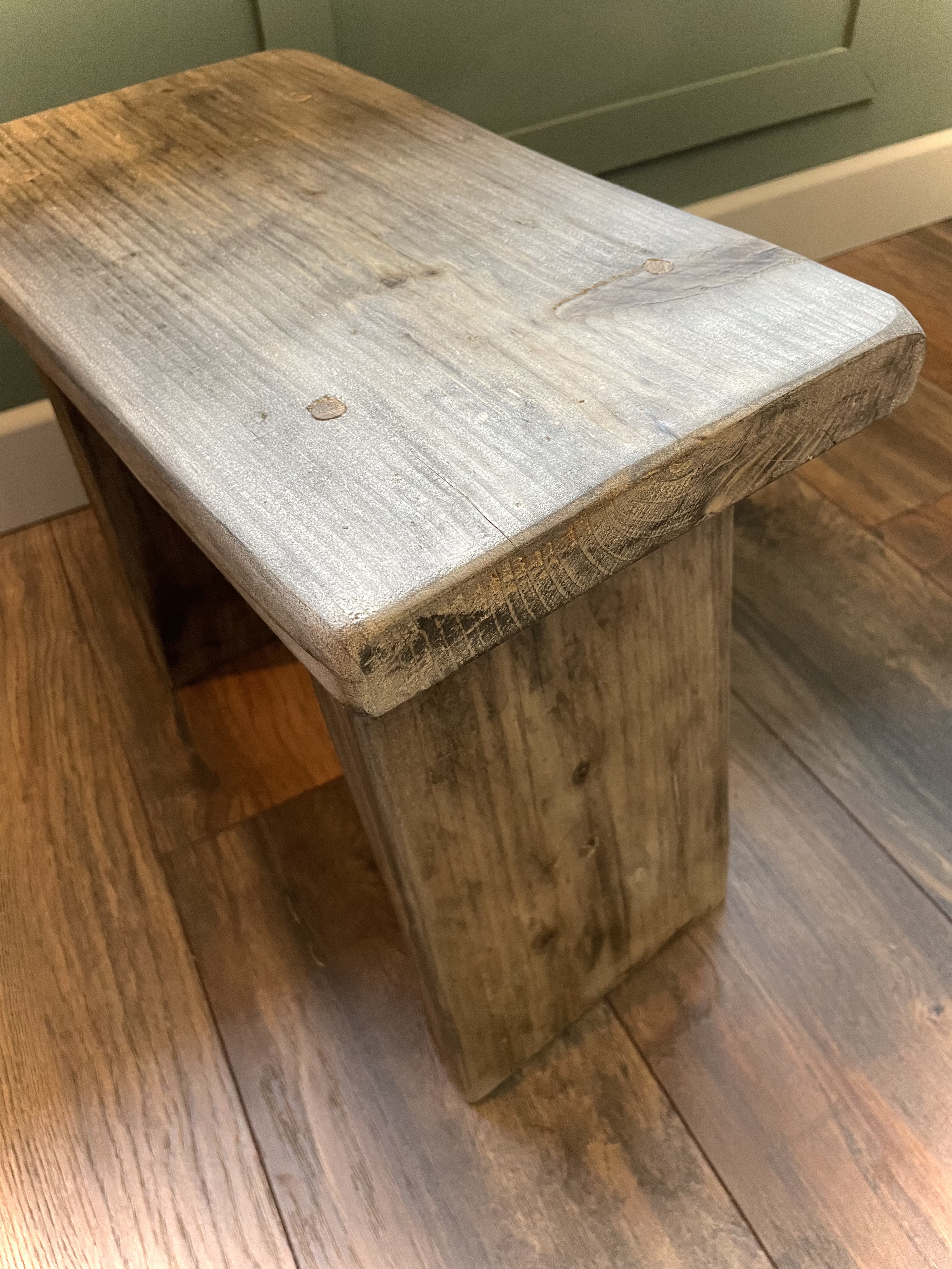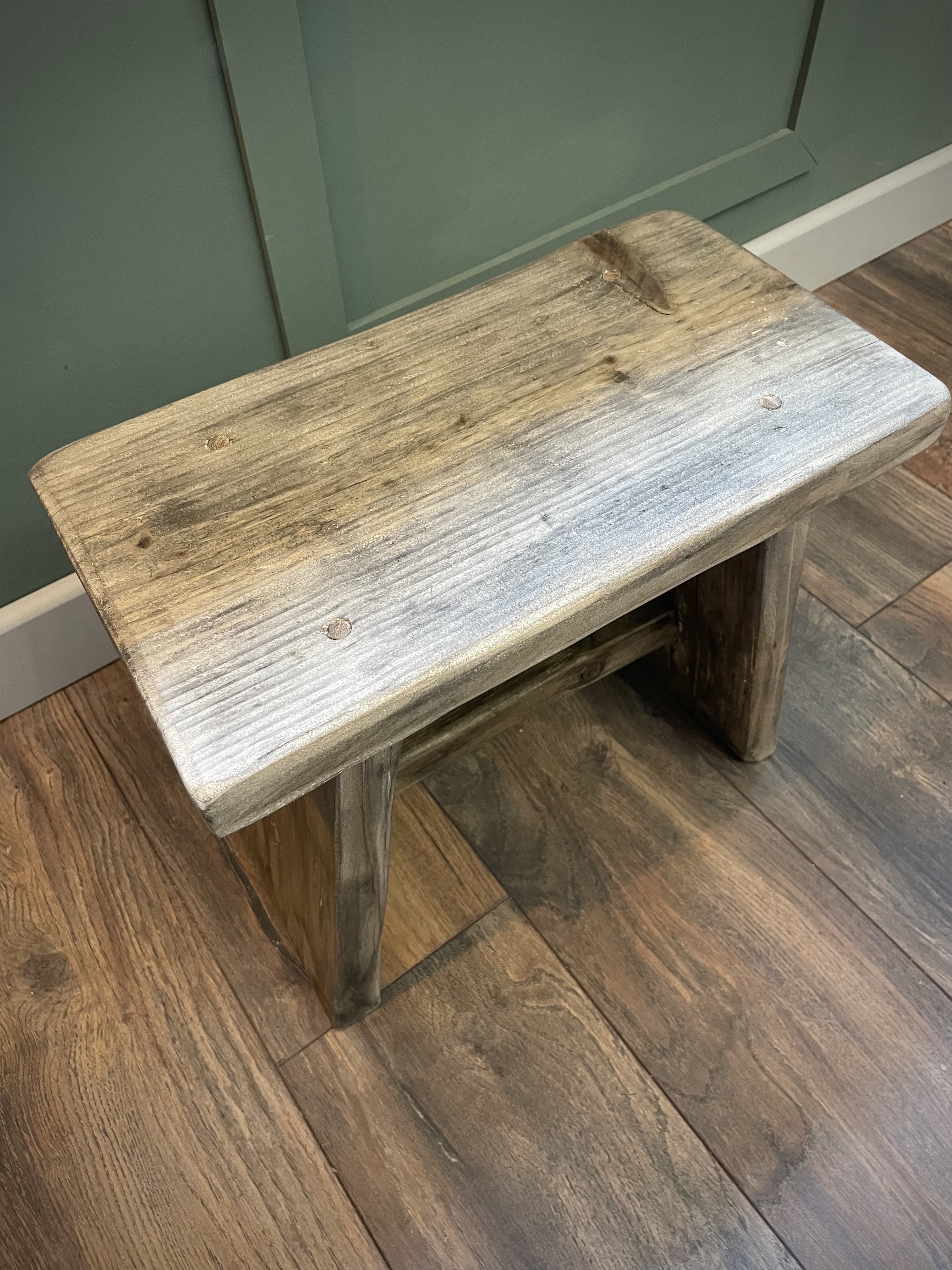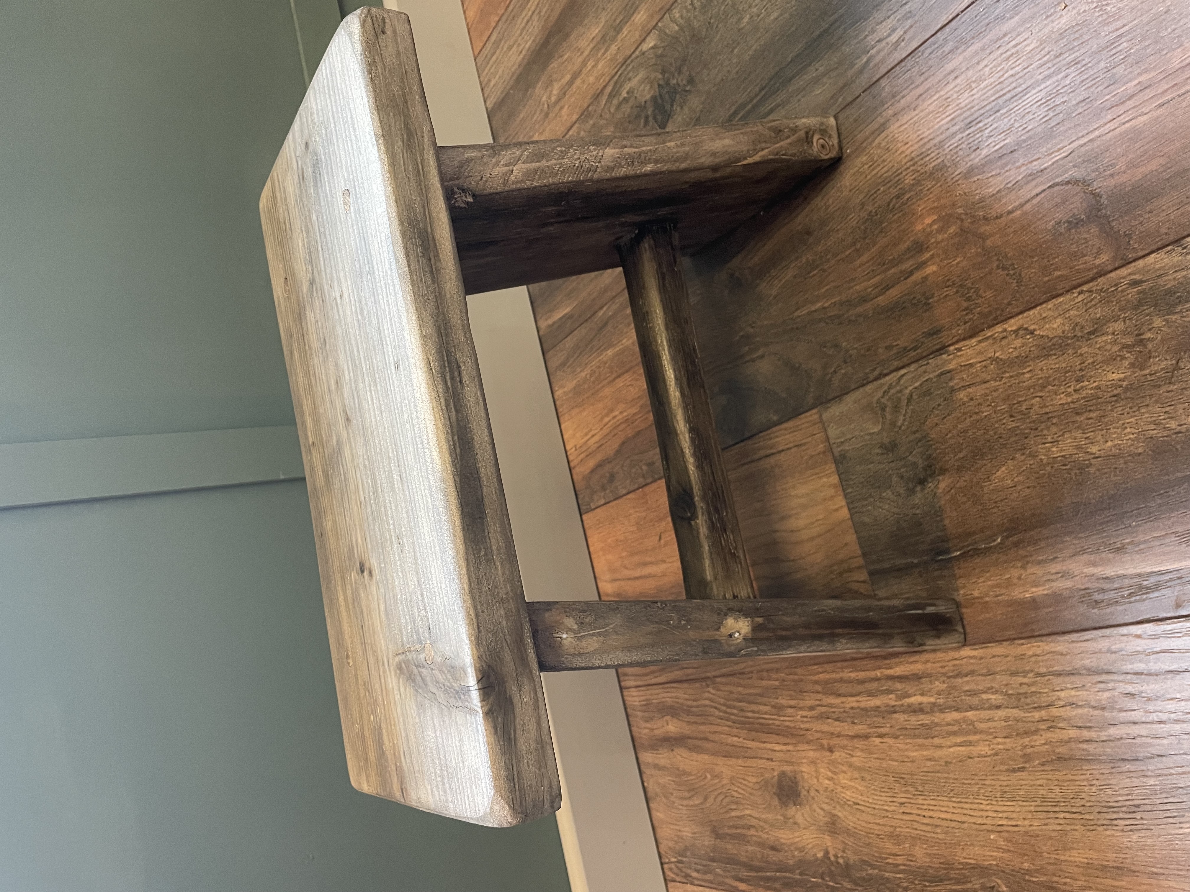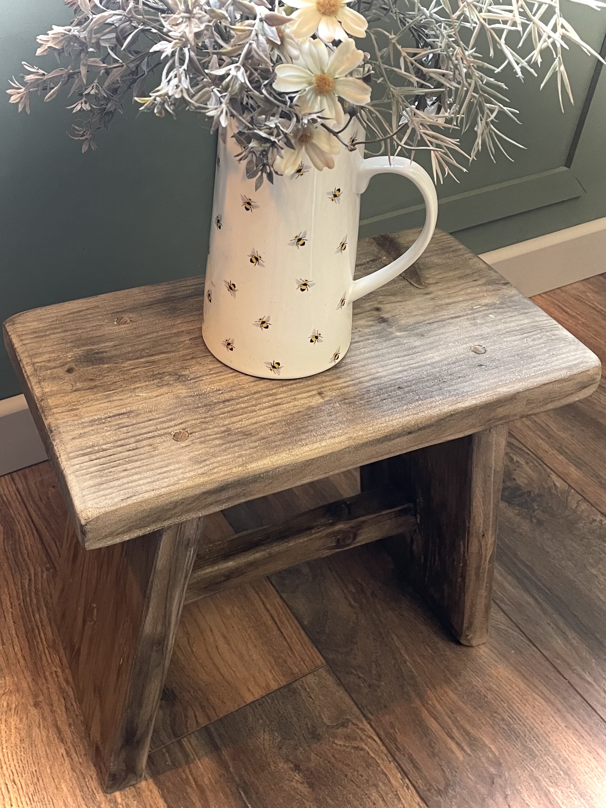 This rustic handmade wooden stool / small table will add a touch of farmhouse charm to any cottage or home.